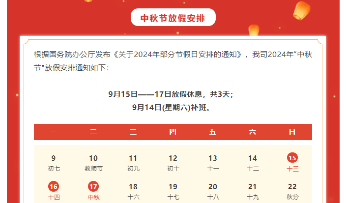 中秋朤朤 —— 中秋节放假通知-凯发手机版