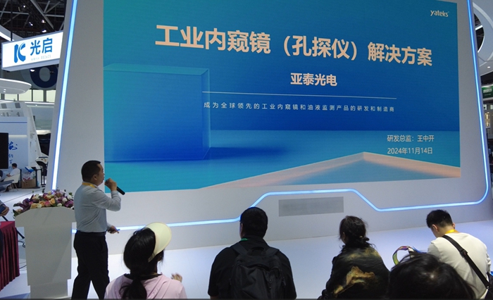 11月14日,亚泰光电继续在航展现场举办了先进检测技术交流会。此次交流会聚焦于工业内窥镜(孔探仪)凯发手机版的解决方案及在线油液监测传感器技术。公司研发总监王中开先生再次登台,详细介绍了亚泰光电在工业内窥镜领域的最新研究成果和凯发手机版的解决方案。这些方案以双百万高清晰度、极细管径、极近焦镜头等特点,能够满足航空航天等不同行业客户的多样化需求。