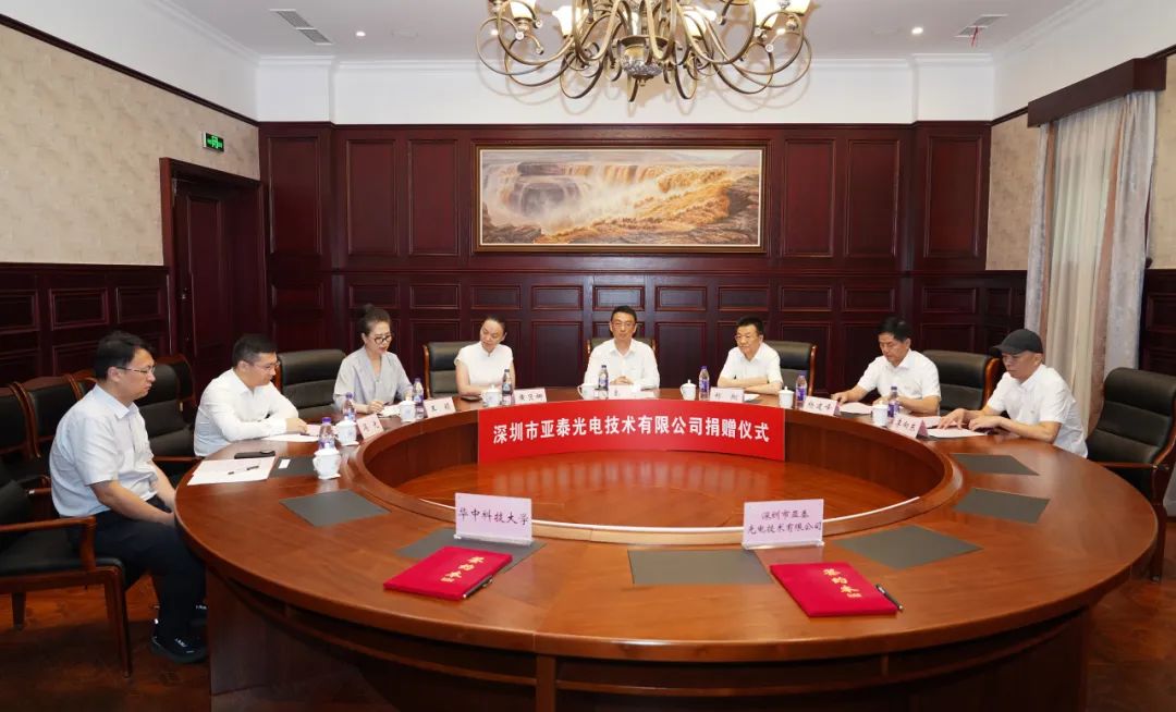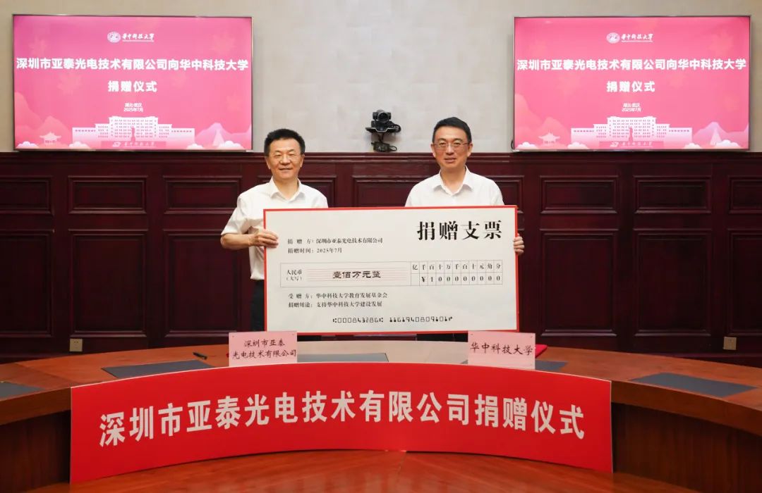 2025年7月17日,在华中科技大学梧桐语论道厅内,一场意义非凡的校企合作拉开了帷幕。作为国家级专精特新“小巨人”企业,深圳市亚泰光电技术有限公司向其母校——华中科技大学慷慨捐赠了100万元人民币设立“亚泰光电奖教奖学金”,旨在支持教育事业的发展,推动科技人才的培养。此次捐赠不仅是对母校深厚情感的体现,更是未来校企合作迈向新高度的重要里程碑。