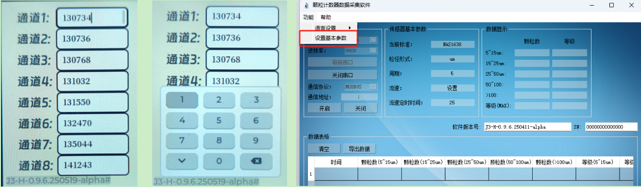 传感器主界面主要由“标准”、“单位”、“周期”、“流速”、“地址”、“协议”、“语言”、“模式”、“波特率”九个选项组成,检测操作时将根据以上四项的设置进行;并且传感器提供上位机软件。