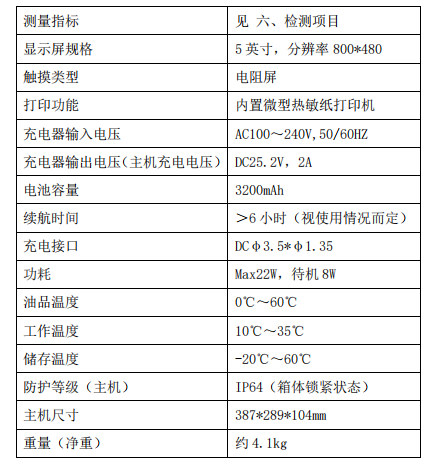 多功能快速油质分析仪主要由5英寸工业电阻显示屏、打印机、内置电源、 恒温装置、流体特性传感器等组成。通过对在用润滑油取样,方便、快速、 稳定的测量出润滑油的运动粘度、密度、介电常数、温度、含水率、含水量、 饱和度等参数。以低成本、简单的方法实现科学的按质换油,延长润滑油使用时间,及早发现设备故障,避免重大损失。